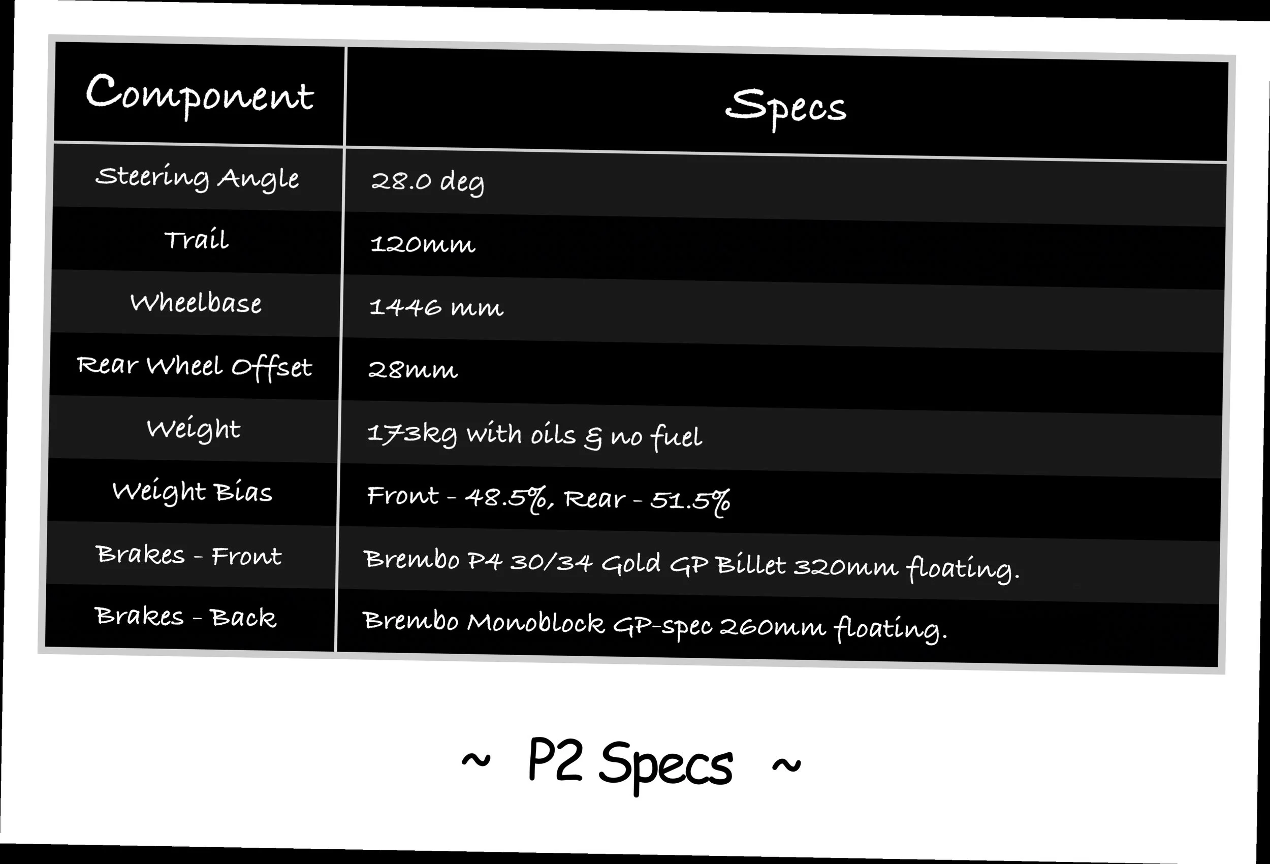 In addition to the new frame, Magni provided the following components with P2: