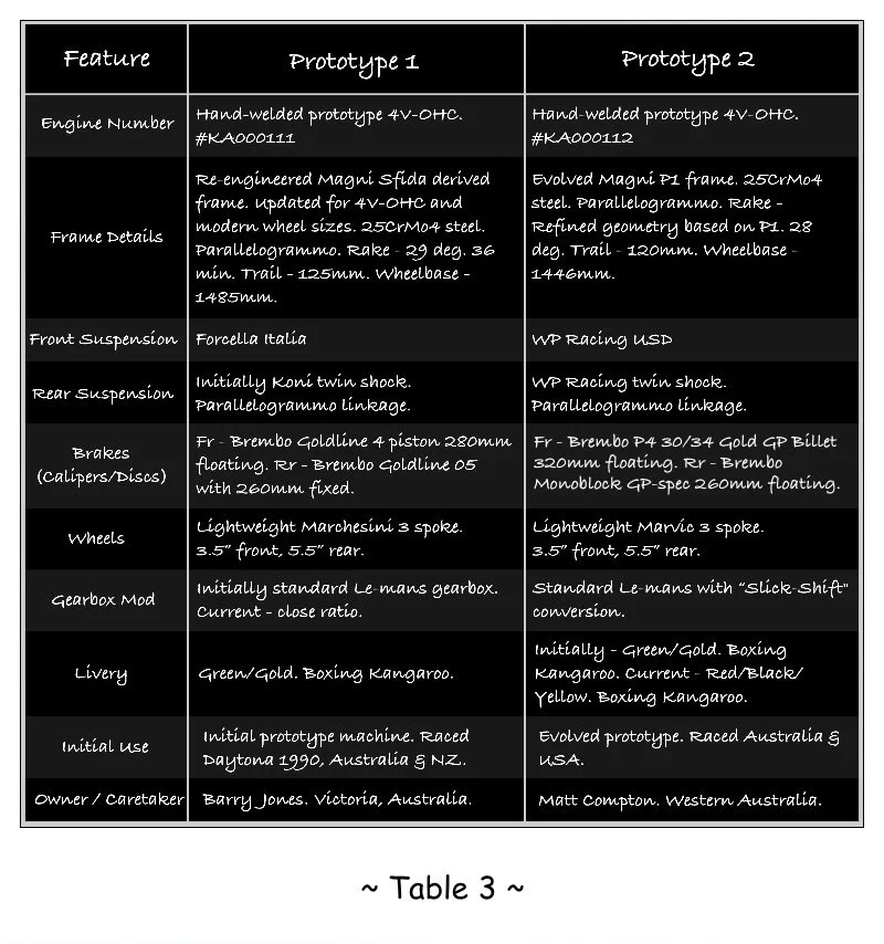 With the engine secured, Stolarski needed a chassis worthy of its power, and he turned to the master craftsman he revered, Arturo Magni. Their partnership was cemented at the 1989 IFMA show in Koln, where Magni agreed to build a bespoke frame for the potent Guzzi engine, their handshake a seal made in faith and the beginning of a unified endeavour. Engine KA000111 was dispatched to Magni’s workshop in Samarate, Italy, where it was fitted into the first prototype frame, based on a modified and modernised version of Magni’s Sfida design, this unique fusion became P1. Magni shipped P1 to Australia with distinctive green and gold livery, a nod to Stolarski’s adopted homeland, and Stolarski attached his favourite Boxing Kangaroo, further emblazoning the prototype with Australian pride.